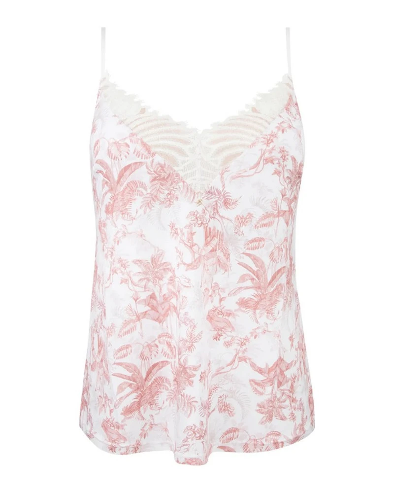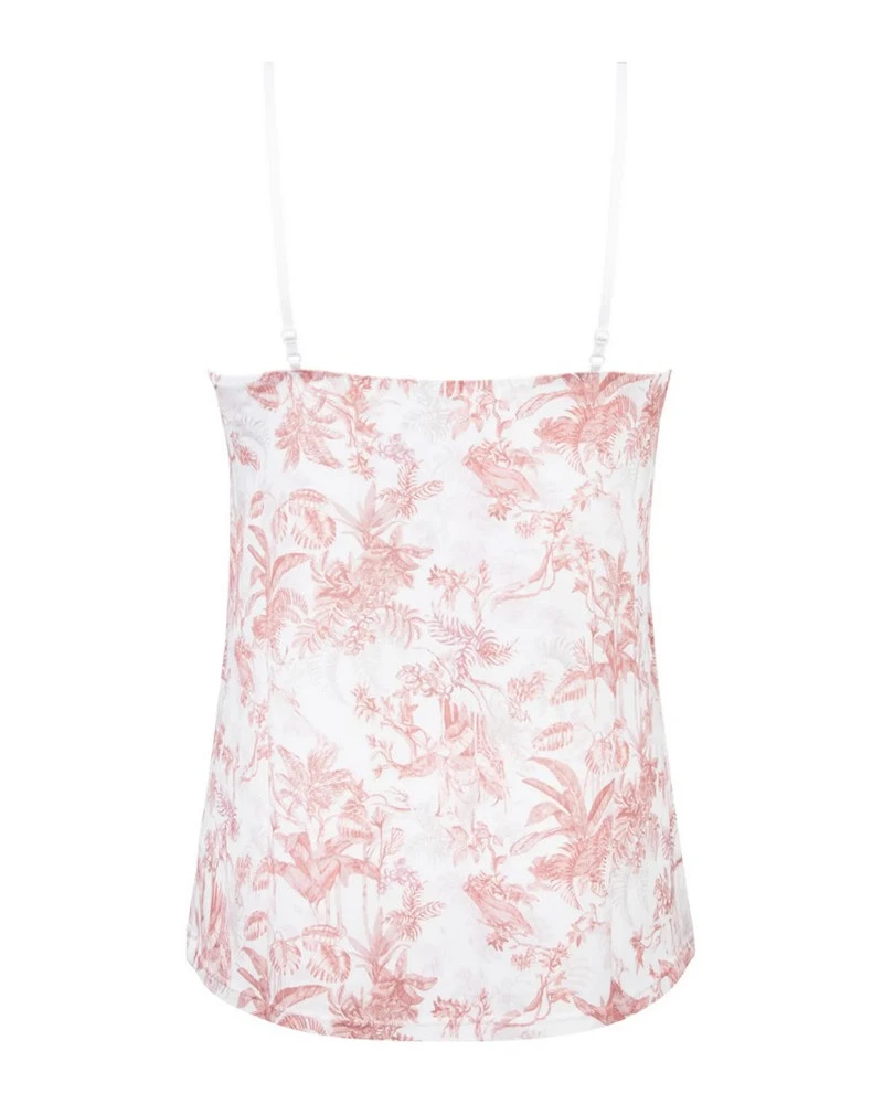 Le caraco Antigel de la collection Jungle de Jouy offre confort et légèreté, parfait pour savourer les moments de détente. Ce top à fines bretelles réglables avec son petit nœud sur le devant est parfait pour matcher avec le pantalon de la collection Jungle de Jouy.