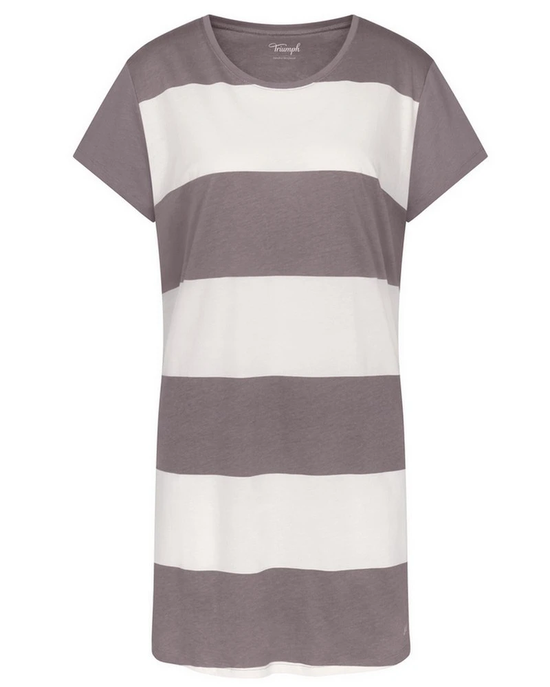 La marque Triumph vous propose cette chemise de nuit à manches courtes et col rond en Jersey avec ces motifs rayé. Elle mesure 90 cm de long et est 100 % coton.