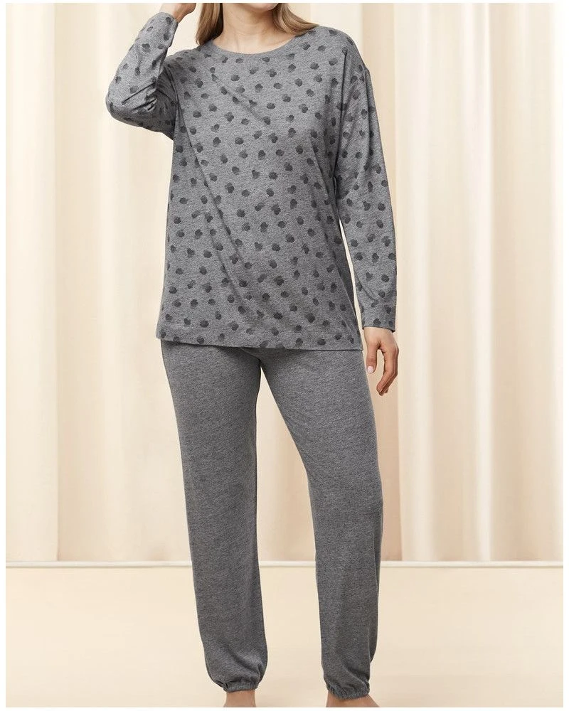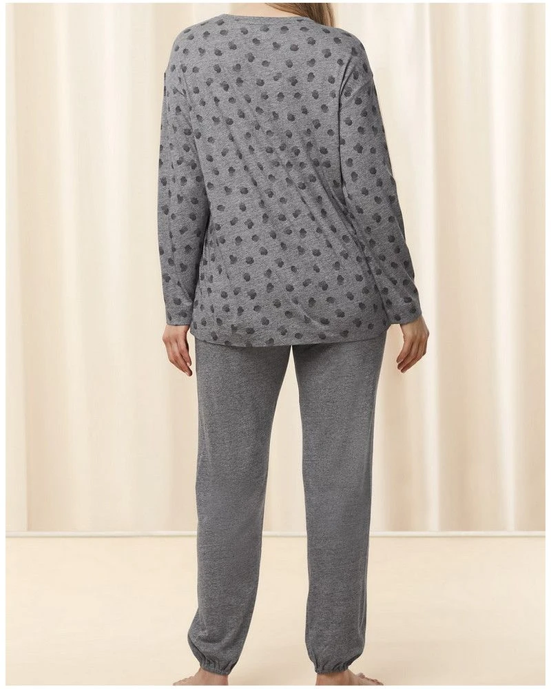 L’ensemble de pyjama Triumph propose un haut manches longues et col rond, assorti d’un pantalon, décorés d’un élégant motif, tous deux sont fabriqués avec une matière naturelle et certifiée Oeko-Tex.