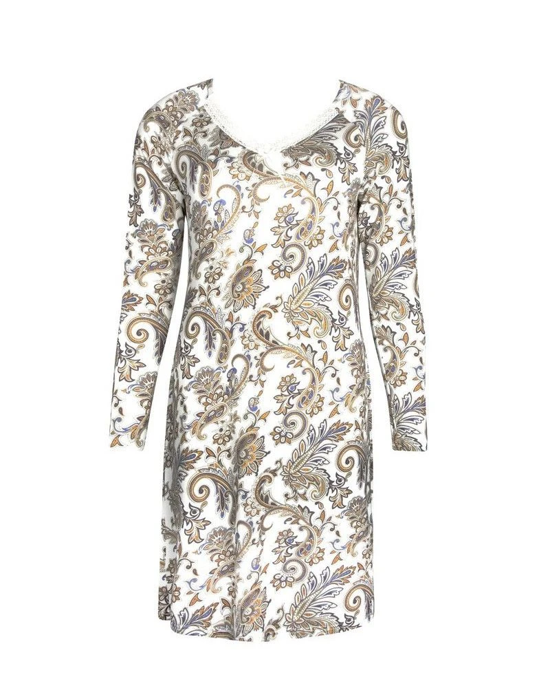 La nuisette manches longues Antigel de la collection Evasion Cashmer vous propose un style féminin et inimitable en maille viscose élasthanne (pulpe de bois) douce et confortable. Une matière unique pour allier sensualité et bien-aller jusqu’au bout de la nuit.