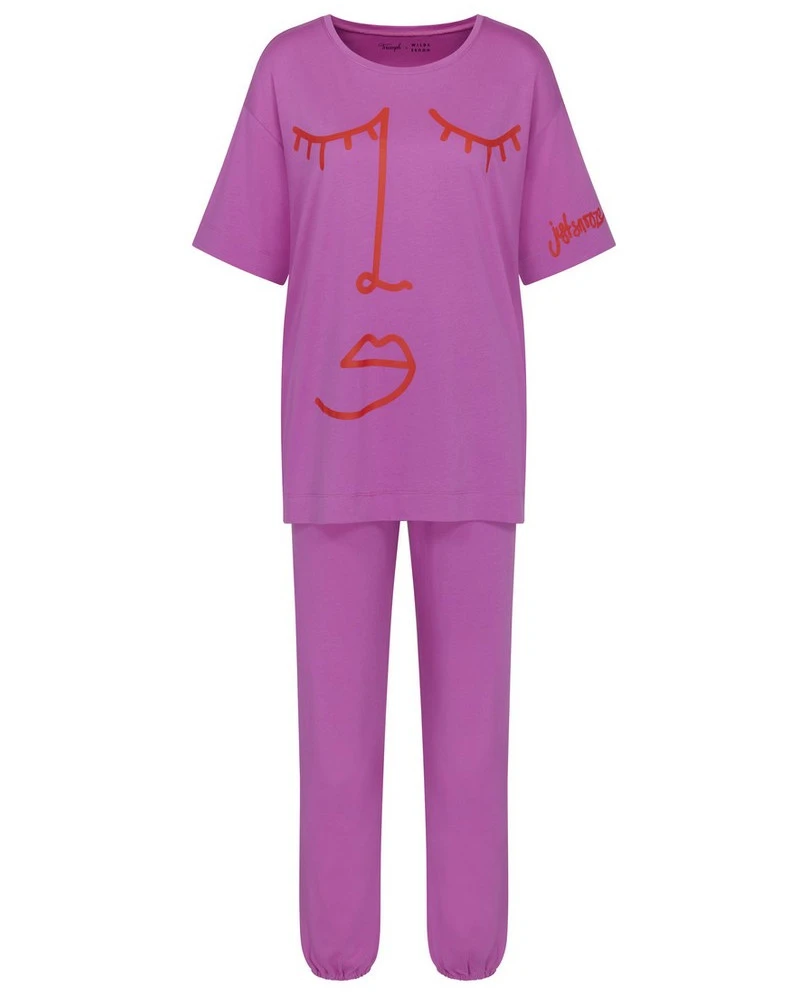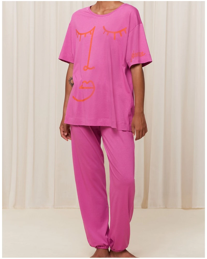 Le pyjama en coton biologique de la marque Triumph permet une meilleure qualité de sommeil et un bien-être premium. Les manches du pyjama sont courtes avec un pantalon long.