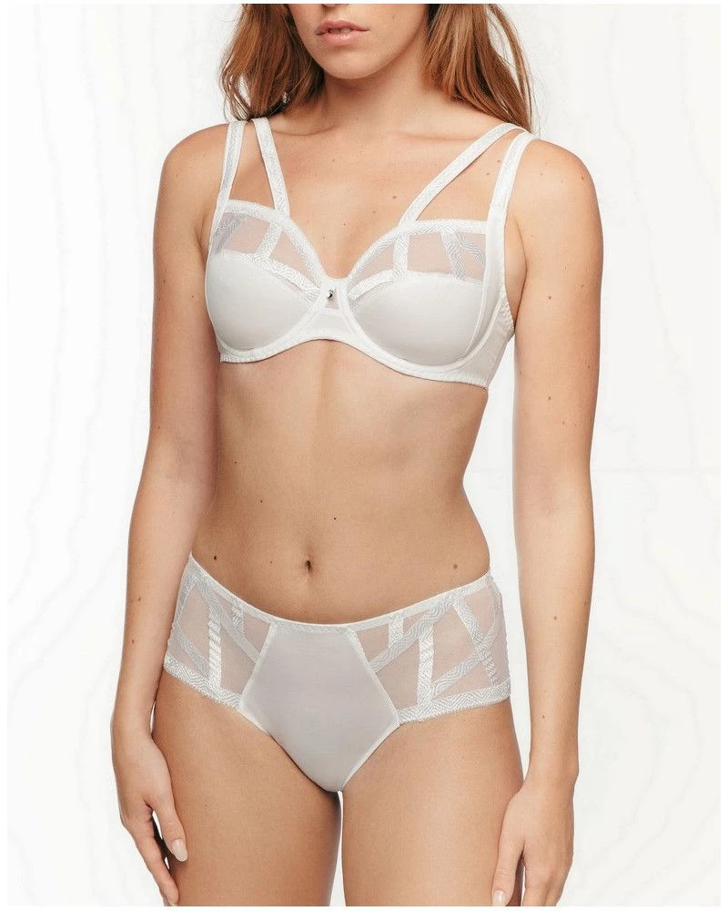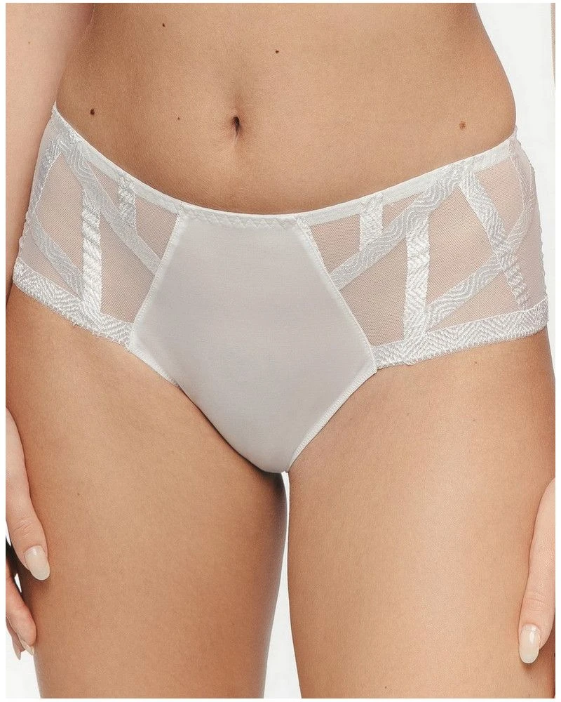 Le shorty de la collection Série par Louisa Bracq propose une forme échancrée et légère agrémentée d’un jeu de transparence et de designs graphiques et osés. La parfaite alliance de séduction et de confort.
