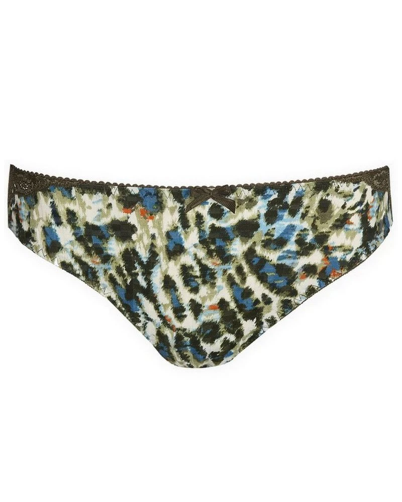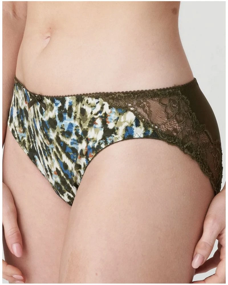 Le slip brésilien Prima Donna dont le tissu à carreaux est orné d’une luxueuse dentelle extensible qui se prolonge sur les fesses.