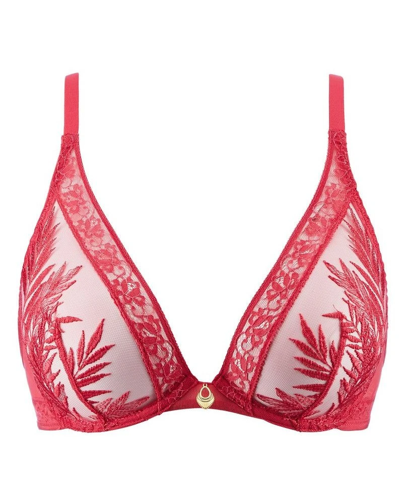Ce soutien-gorge triangle avec armatures a des bonnets profonds avec un maintien parfait. Un bijou doré en forme de feuille tropicale et des bretelles décorées illuminent le soutien-gorge.