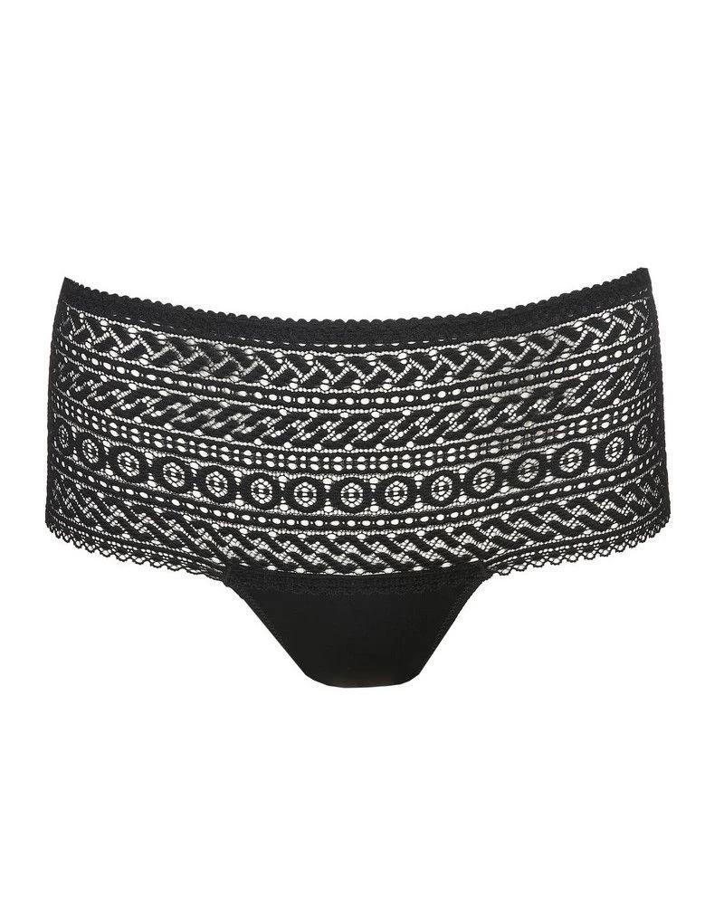 String de luxe riche en dentelle qui couvre un peu plus les fesses. Un style sexy pour les femmes qui ne portent pas de strings habituellement ! Dentelle tendance en noir intemporel : que demander de plus ?
