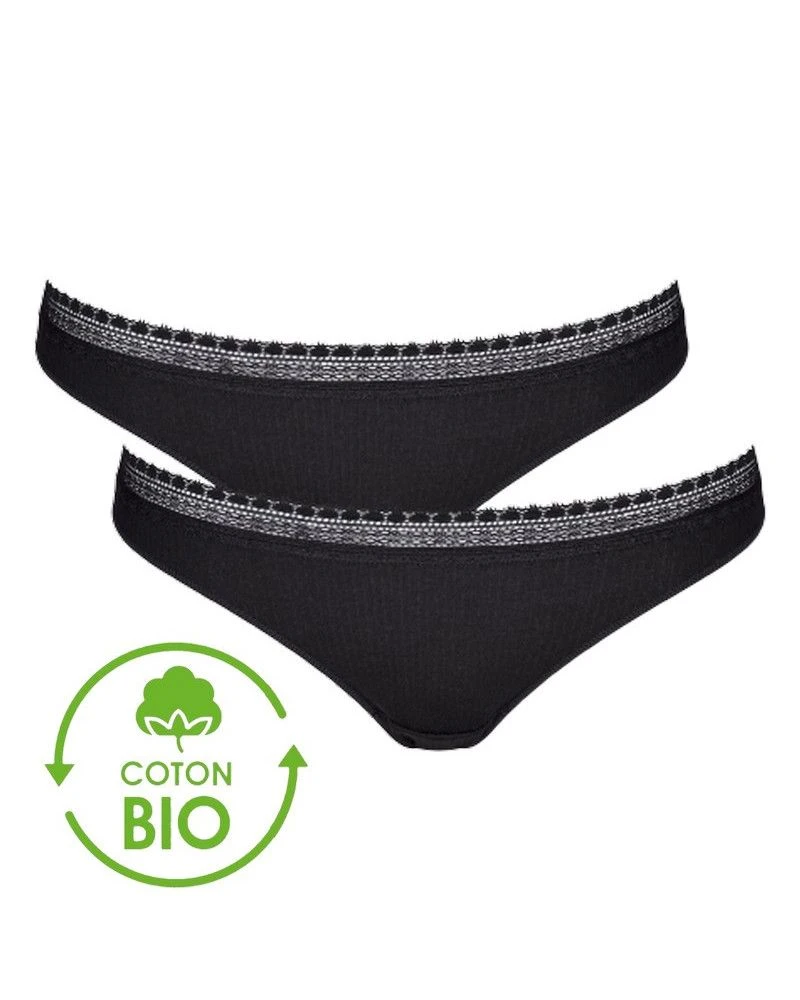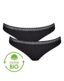 Tangas (Lot De 2) Coton Bio Sloggi GO Ribbed (Noir)